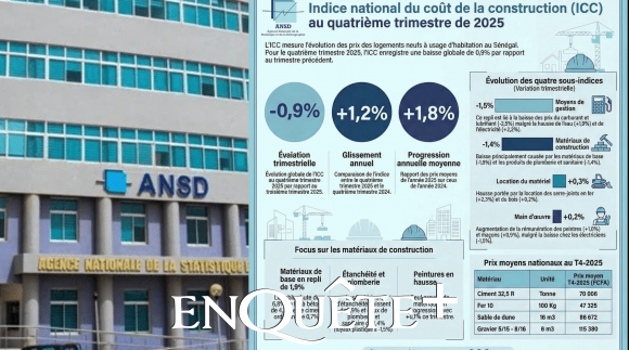 Au quatrième trimestre 2025, le chiffre d’affaires des services spécialisés, scientifiques et techniques a augmenté de 20,7 % en variation annuelle, en liaison avec la hausse de celui des services de publicité et d’études de marché (+32,1 %), des activités juridiques et comptables (+27,7 %) et, dans une moindre mesure, des services d’architecture, d’ingénierie et techniques (+7,7 %). En revanche, en cumul sur l’année 2025, le chiffre d’affaires des services spécialisés, scientifiques et techniques s’est amoindri légèrement (-0,8 %) par rapport à 2024. En variation annuelle, selon l'ANDS, le chiffre d’affaires des services de transport et d’entreposage s’est rehaussé de 12,2 % au quatrième trimestre 2025.